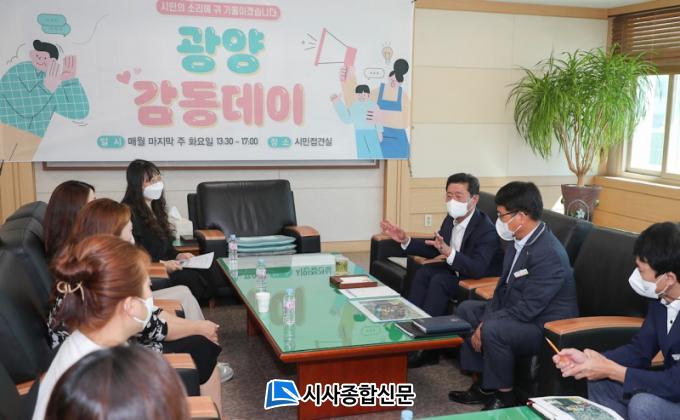 ÇÑÆí, ¡®±¤¾ç °¨µ¿µ¥ÀÌ¡¯´Â ½Ã¹Î ´©±¸³ª ½ÃÀå(ºÎ½ÃÀå, ±¹Àå)À» ¸¸³ª ½ÃÁ¤¿¡ ´ëÇÑ ÀǰßÀ» ÀÚÀ¯·Ó°Ô À̾߱âÇÔÀ¸·Î½á ½Ã¹ÎÀÇ °íÃæÇØ¼Ò´Â ¹°·Ð ½ÃÀÇ ¹ßÀü¹æÇâÀ» ¸ð»öÇÏ´Â ÀÚ¸®·Î ¸Å¿ù ¸¶Áö¸· ÁÖ È¿äÀÏ ±¤¾ç½Ãû 2Ãþ ½Ã¹ÎÁ¢°ß½Ç¿¡¼ ¿¸®°í ÀÖ´Ù.