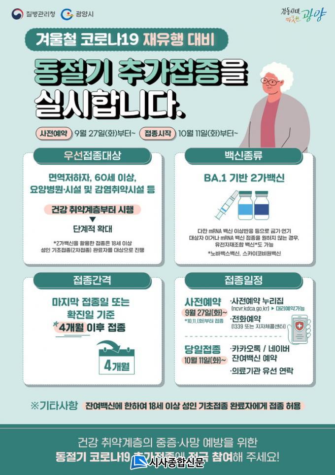 ¿ì¼±¼øÀ§ 1¼øÀ§ ´ë»óÀÚ´Â ¸é¿ªÀúÇÏÀÚ, °¨¿° Ãë¾à½Ã¼³ Á¾»ç¡¤ÀÔ¼ÒÀÚ, 60¼¼ ÀÌ»ó °í·ÉÃþÀ̸ç, 2¼øÀ§´Â 50´ë ¿¬·ÉÃþ, 18¼¼ ÀÌ»ó ±âÀúÁúȯÀÚ, º¸°ÇÀÇ·áÀÎ µîÀ̰í, 3¼øÀ§´Â 18¼¼ ÀÌ»ó ÀÏ¹Ý ½Ã¹ÎÀÌ ÇØ´çÇÑ´Ù. ¿ì¼±¼øÀ§ 1¼øÀ§¿¡ ÇØ´çÇÏ´Â °Ç° Ãë¾à°èÃþÀº »çÀü¿¹¾à ´©¸®ÁýÀ» ÅëÇØ »çÀü ¿¹¾àÀÌ ½ÃÀ۵Ǹç, ½º½º·Î ¿¹¾àÀÌ ¾î·Á¿î °í·ÉÃþÀÇ °æ¿ì ´ë¸®¿¹¾à ȤÀº ÀüÈ¿¹¾à(¢Î1339, 061-797-4029)À» ÅëÇØ ¿¹¾à °¡´ÉÇÏ´Ù.