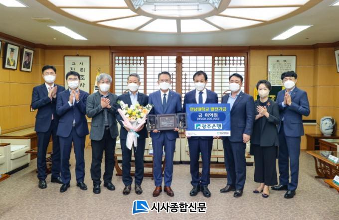 Á¤¼ºÅà Àü³²´ë ÃÑÀåÀº ¡°±¤ÁÖÀºÇàÀº ±¤Áֽùε鿡°Ô °¡Á· °°Àº Á¸Àç·Î, ±× ºê·£µå °¡Ä¡´Â ½±°Ô Æò°¡Çϱ⠾î·Á¿ï ¸¸Å Å©´Ù.¡±¸ç, ¡°¼ÒÁßÇÑ ±âºÎ±ÝÀº Àü³²´ë°¡ ´õ¿í ´õ Áö¿ª»çȸ ¹ßÀü¿¡ ³ë·ÂÇØ ´Þ¶ó´Â ¶æ¿¡ ¸Â°Ô »ç¿ëµÉ °Í¡±À̶ó°í ¸»Çß´Ù.