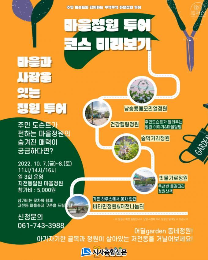 ¡®ÀúÀüµ¿ ¸¶À»Á¤¿ø µµ½¼Æ® Åõ¾î¡¯ ½Åû¿¡ °üÇÑ ±âŸ ÀÚ¼¼ÇÑ »çÇ×Àº ÀúÀüµ¿ ¸¶À»Á¤¿ø Åõ¾î ´©¸®Áý(https://gardenvillage.modoo.at/)¿¡¼ È®ÀÎÇϰųª ÀúÀüµ¿ ÇöÀåÁö¿ø¼¾ÅÍ(061-743-3988)·Î ¹®ÀÇÇÏ¸é µÈ´Ù.