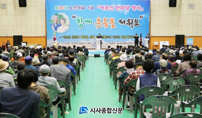 À±º´Å ³ªÁÖ½ÃÀåµµ Ãà»ç¸¦ ÅëÇØ ¡°¿À´Ã³¯ ¿ì¸® ¸ðµÎ°¡ ´©¸®°í Àִ dz¿ä¿Í ÇູÀº ±×µ¿¾È ¾î¸£½ÅµéÀÌ È기 ÇÇ¿Í ¶¡ÀÇ °á°ú¶ó°í »ý°¢ÇÑ´Ù¡±¶ó¸ç ¡°¾î¸£½ÅµéÀÌ °Ç°Çϰí ǰÀ§ ÀÖ´Â ³ëÈÄ»ýȰ ¿©°Ç ¸¶·Ã°ú °æ·û°ú ÁöÇý¸¦ »çȸ¿¡ ȯ¿øÇÒ ¼ö ÀÖ´Â ±â¹Ý Á¶¼º¿¡ ½ÉÇ÷À» ±â¿ïÀ̰ڴ١±¶ó°í ¸»Çß´Ù.