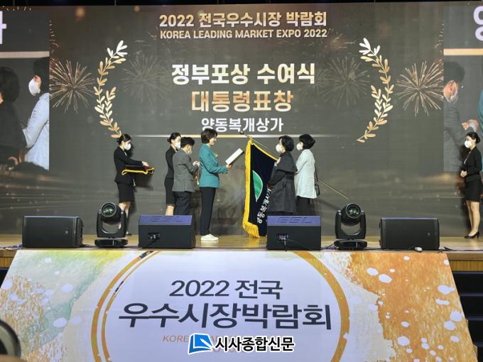 [½Ã»çÁ¾ÇսŹ® = ¿À½ÂÅà ±âÀÚ] ¾çµ¿º¹°³»ó°¡°¡ Áö³ 9¿ù 30ÀÏ °æ»óºÏµµ ¿µÁֽÿ¡¼ ¿¸° ¡®2022 Àü±¹ ¿ì¼ö½ÃÀå¹Ú¶÷ȸ¡¯¿¡¼ Àü±¹ 1,700¿©°³ ÀüÅë½ÃÀå Áß °¡Àå ¿ì¼öÇÑ ½ÃÀåÀ¸·Î ¼±Á¤µÇ¾î ´ëÅë·É»óÀ» ¼ö»óÇÏ´Â ¿µ¿¹¸¦ ¾È¾Ò´Ù.