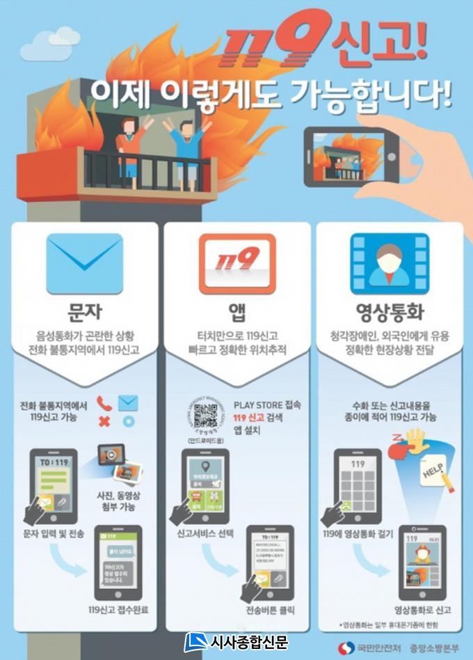 119´Ù¸Åü ½Å°í¼ºñ½º´Â ±âÁ¸ À½¼º¿¡ ÀÇÇÑ ½Å°í ¿Ü¿¡ ¿µ»ó, ¹®ÀÚ(SMS, MMS), ¾Û(App)µîÀÇ ¹æ½ÄÀ¸·Îµµ 119 ½Å°í¸¦ ÇÒ ¼ö ÀÖ´Â ¼ºñ½ºÀÌ´Ù.