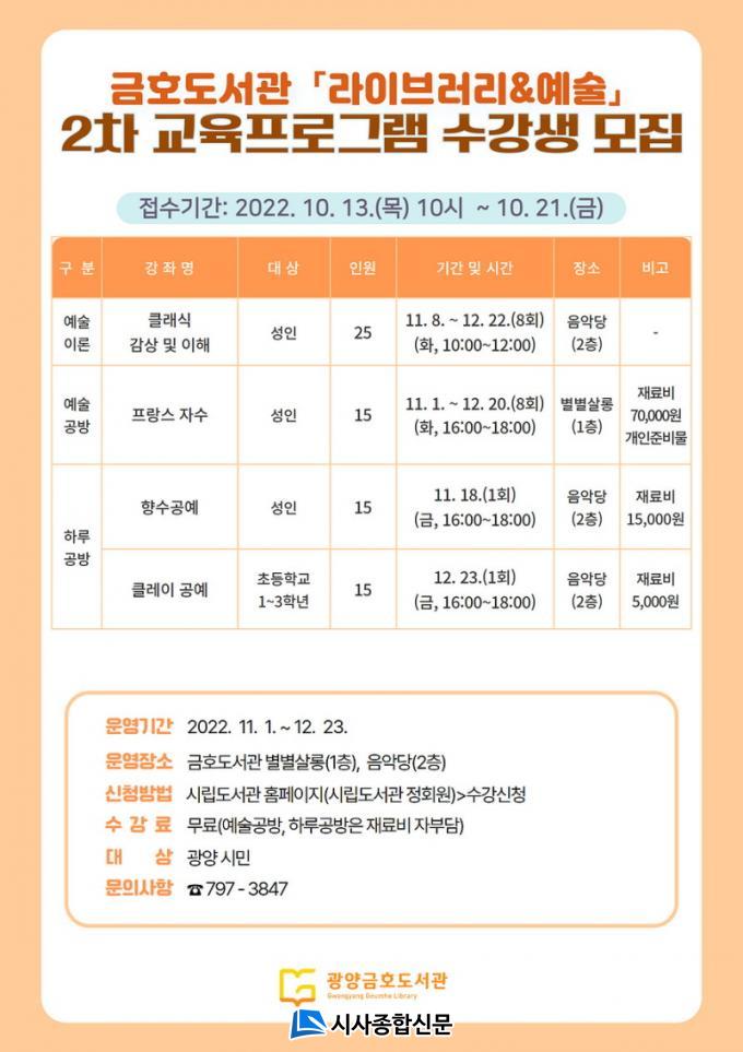 ¿À´Â 11¿ù 1ÀϺÎÅÍ ¿î¿µÇÏ´Â ±³À°ÇÁ·Î±×·¥Àº ¼ºÀÎÀ» ´ë»óÀ¸·Î ÇÏ´Â ¿¹¼úÀÌ·Ð ¡®Å¬·¡½Ä °¨»ó ¹× ÀÌÇØ¡¯, ¿¹¼ú °ø¹æ ¡®ÇÁ¶û½º ÀÚ¼ö¡¯, ÇÏ·ç °ø¹æ ¡®Çâ¼ö °ø¿¹¡¯°¡ ÀÖÀ¸¸ç, ÃʵîÇлý ÀúÇгâÀ» ´ë»óÀ¸·Î ÇÏ´Â ¡®Å¬·¹ÀÌ °ø¿¹¡¯ °Á·Π±¸¼ºµÅ ÀÖ´Ù.