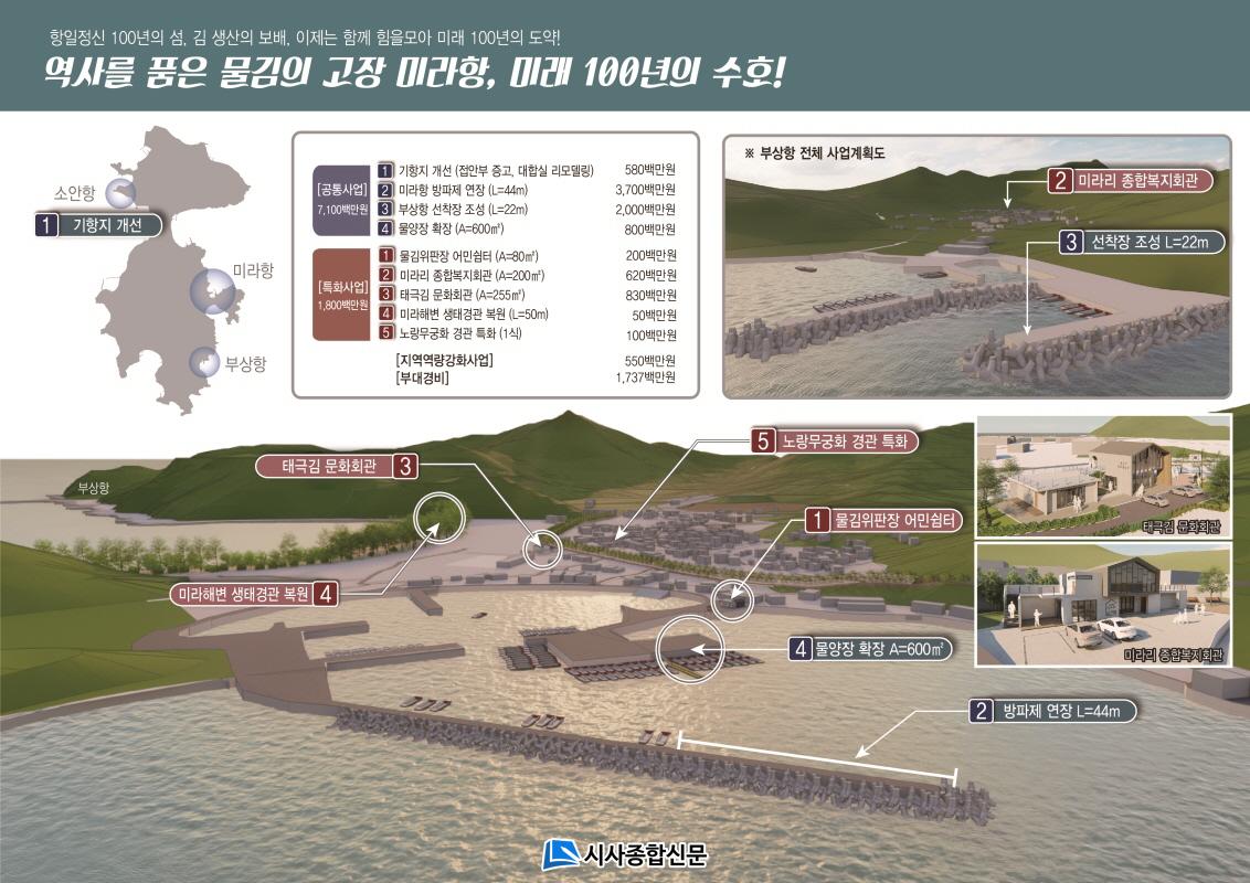 ¼Ò¾Èµµ(Àü¶ó³²µµ ¿Ïµµ¿¡¼ ³²ÂÊÀ¸·Î 17.8km ÁöÁ¡¿¡ ÀÖ´Â ¼¶)´Â ÀÏÁ¦°Á¡±â ºÎ»ê µ¿·¡, ÇÔ°æµµÀÇ ºÏû°ú ÇÔ²² °¡Àå °Ý·ÄÇÑ Ç×ÀϿÀ» ÆîÃÆ´ø µ¶¸³¿îµ¿ 3´ë¼ºÁöÀÌÀÚ 21¸íÀÇ µ¶¸³À¯°øÀÚ¸¦ ¹èÃâÇÑ Ç×ÀÏÀÇ ¼¶À¸·Î, À̹ø ¹Ì¶óÇ× ¾îÃÌ´ºµô»ç¾÷À» ÅëÇØ ¼Ò¾Èµµ°¡ º¸À¯ÇÑ ÇÙ½ÉÀÚ¿ø(¿ª»ç‧ÇØ¾ç‧°ü±¤)À» Ȱ¼ºÈ½Ã۰í ÁֹεéÀÇ »ýȰ ÀÎÇÁ¶ó¸¦ °³¼±ÇÒ °èȹÀÌ´Ù.