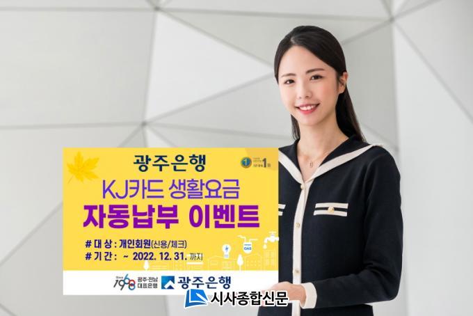 ¿ÃÇØ »ó¹Ý±â¿¡ À̾î ÇϹݱ⿡µµ ÁøÇàÇÏ´Â ¡®2022³â ±¤ÁÖÀºÇà KJÄ«µå »ýȰ¿ä±Ý ÀÚµ¿³³ºÎ À̺¥Æ®¡¯´Â ±¤ÁÖÀºÇà KJÄ«µå·Î »ýȰ¿ä±Ý ÀÚµ¿³³ºÎ¸¦ ½ÅûÇÑ °³ÀÎȸ¿ø(½Å¿ë¡¤Ã¼Å©Ä«µå)¿¡°Ô ÃÖ´ë 2¸¸4õ¿ø±îÁö ij½Ã¹éÀ» Á¦°øÇÑ´Ù.