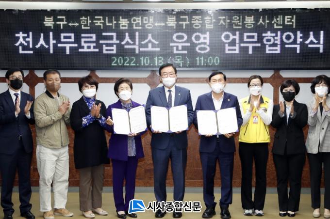 13ÀÏ ºÏ±¸¿¡ µû¸£¸é (»ç)Çѱ¹³ª´®¿¬¸Í, ºÏ±¸Á¾ÇÕÀÚ¿øºÀ»ç¼¾ÅÍ¿Í ¡®Ãµ»ç¹«·á±Þ½Ä¼Ò¡¯ ¿î¿µ Àç°³¸¦ À§ÇÑ ¾÷¹«Çù¾àÀ» ü°áÇß´Ù.