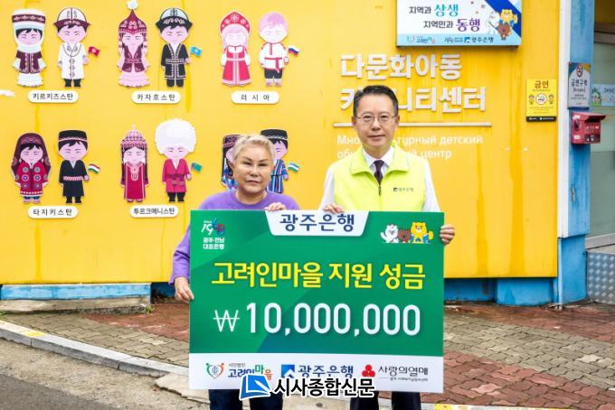 Æò¼Ò ´Ù¹®È°¡Á· ¹× Áö¿ª ³» ¼Ò¿Ü°èÃþÀ» ÈÄ¿øÇÏ´Â »çȸ°øÇåȰµ¿À» Áö¼ÓÀûÀ¸·Î ÆîÃĿ ±¤ÁÖÀºÇàÀº ·¯½Ã¾Æ °Á¦ µ¿¿ø·ÉÀ¸·Î ¡Áý ´ë»óÀÌ µÈ °¡Á·À» µÐ ±¤ÁÖ °í·ÁÀθ¶À» Áֹεé°ú ³¹ÎµéÀÇ ¾ÈŸ±î¿î »ç¿¬À» Á¢Çϰí ÀÌ¿¡ ÈûÀ» º¸Å°íÀÚ ÈÄ¿ø±ÝÀ» Àü´ÞÇß´Ù.