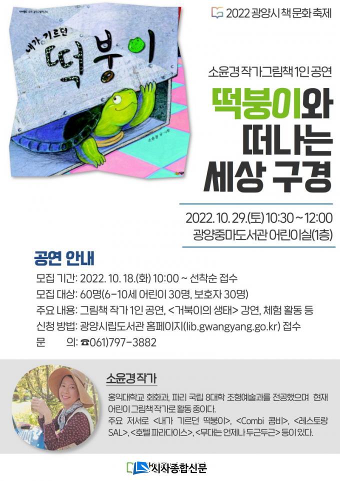 ÇÑÆí, 10¿ù 29ÀÏ ±¤¾çÁ߸¶µµ¼°ü ÀÏ¿ø¿¡¼ ÁøÇàÇÏ´Â ¡®2022 ±¤¾ç½Ã Ã¥ ¹®ÈÃàÁ¦¡¯´Â °¼öµ¹ °í·Á´ë ¸í¿¹±³¼ö Ư°, ¾î¸°ÀÌ »ó»óÈ ±×¸®±â °æ¿¬´ëȸ, ÇØ¼³ÀÌ ÀÖ´Â Ä«Æä ÄܼƮ¿Í ´Ù¾çÇÑ Ã¼Çè ºÎ½º µî ´Ù¾çÇÑ ¹®ÈÇà»ç·Î ½Ã¹Î°úÀÇ ¸¸³²À» ÁغñÇϰí ÀÖ´Ù.
