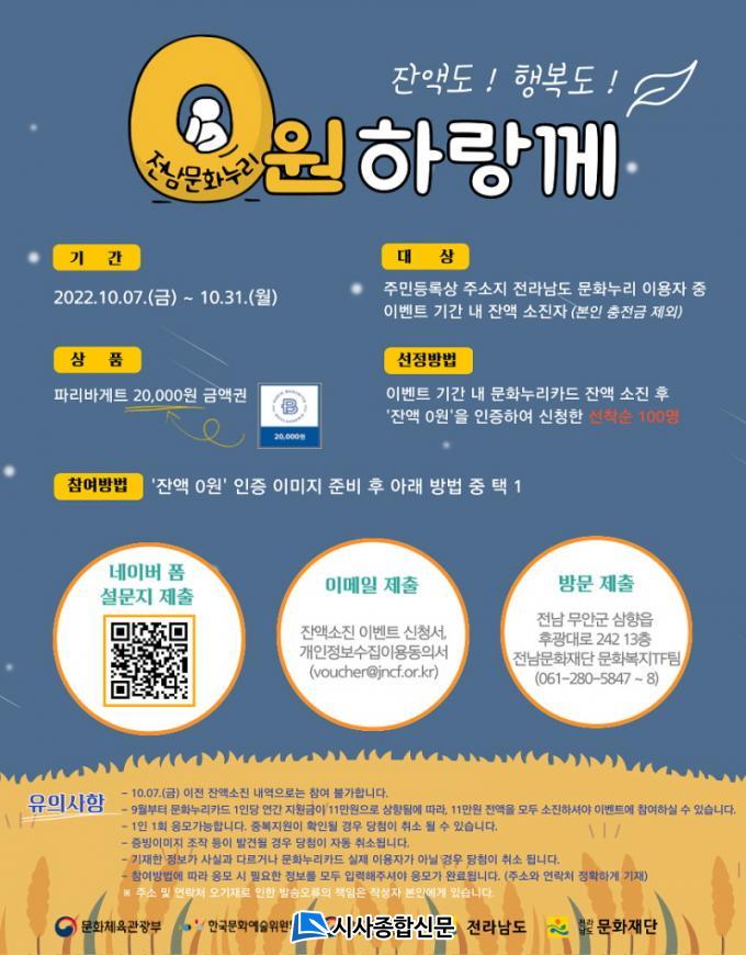 À̺¥Æ®¿¡ Âü¿©Çϱâ À§Çؼ´Â Áö¿ø±Ý ÀÜ¾× ¼ÒÁø ÈÄ Àü³²¹®ÈÀç´Ü °øÁö»çÇ׿¡ ÀÖ´Â ½Åû¼¸¦ ´Ù¿î¹Þ¾Æ À̸ÞÀÏ(voucher@jncf.or.k) ¶Ç´Â ³×À̹ö Æû µî ÆíÇÑ ¹æ¹ýÀ» ¼±ÅÃÇØ Ä«µå½ÂÀÎ ¹®ÀÚ È¤Àº ¡®ÀÜ¾× 0¿ø¡¯ ¿µ¼öÁõ À̹ÌÁö¸¦ ÇʼöÁ¤º¸¿Í ÇÔ²² ÀÔ·ÂÇØ Á¦ÃâÇÏ¸é µÈ´Ù.