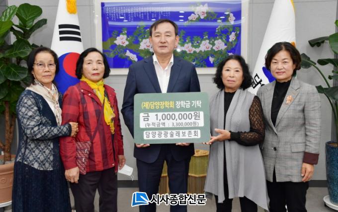 [½Ã»çÁ¾ÇսŹ® = ¿À½ÂÅà ±âÀÚ] ´ã¾ç±º ÇâÅ乫Çü¹®ÈÀ¯»ê ¹«Çü Á¦4È£ÀÎ ´ã¾ç±¤±¤¼ú·¡º¸Á¸È¸¿¡¼ °¢Á¾ ´ëȸ¿¡ Âü¿©ÇØ ¹ÞÀº ¼ö»ó±Ý°ú ȸ¿øµéÀÇ ¼º±ÝÀ» ¸ð¾Æ Áö¿ªÀÎÀçÀ°¼ºÀ» À§ÇØ »ç¿ëÇØ ´Þ¶ó¸ç ÀåÇÐ±Ý 100¸¸¿øÀ» ´ã¾çÀåÇÐȸ¿¡ ±âŹÇß´Ù.