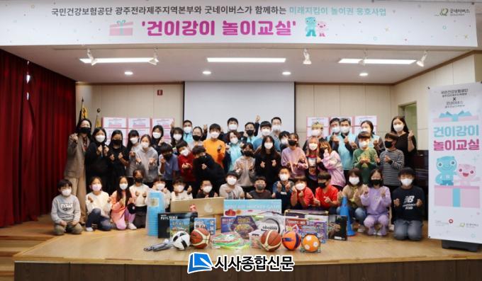 | ±Â³×À̹ö½º ±¤ÁÖÀü³²Áö¿ªº»ºÎ, ±¹¹Î°Ç°º¸Çè°ø´Ü ±¤ÁÖÀü¶óÁ¦ÁÖÁö¿ªº»ºÎ °ÇÀ̰ÀÌ ³îÀ̱³½Ç ÁøÇà µµ¼Áö¿ª ¾Æµ¿ÀÇ ³îÀÌ±Ç º¸ÀåÀ» À§ÇØ Åä»êÃʵîÇб³¿¡ ¡®°ÇÀ̰ÀÌ ³îÀÌ»óÀÚ¡¯ 60°³ Àü´Þ |