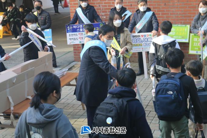 [½Ã»çÁ¾ÇսŹ® = ¿À½ÂÅà ±âÀÚ] ±¤ÁÖ¼ºÎ±³À°Áö¿øÃ»ÀÌ 19ÀÏ ¿ÀÀü 8~9½Ã ºÀ»êÃʵîÇб³¿¡¼ µî±³ÇÏ´Â ÇлýµéÀ» ¸ÂÀÌÇÏ¸ç ½ºÄðÁ¸ ±³Åë¾ÈÀü Ä·ÆäÀÎÀ» ½Ç½ÃÇß´Ù.