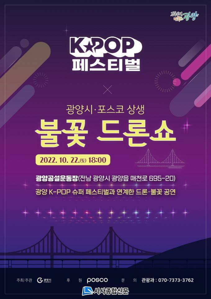 ±¤¾ç½Ã°¡ ÁÖÃÖÇÏ°í Æ÷½ºÄÚ°¡ ÈÄ¿øÇÏ´Â ¡®±¤¾ç½Ã & Æ÷½ºÄÚ »ó»ý ºÒ²É µå·Ð¼î¡¯´Â ¡®2022 ±¤¾ç K-POP Æä½ºÆ¼¹ú¡¯À» ÃàÇÏÇÏ°í »ó»ý Çù·ÂÀ» ±â¿øÇÏ´Â Àǹ̷Π¸¶·ÃµÆ´Ù.