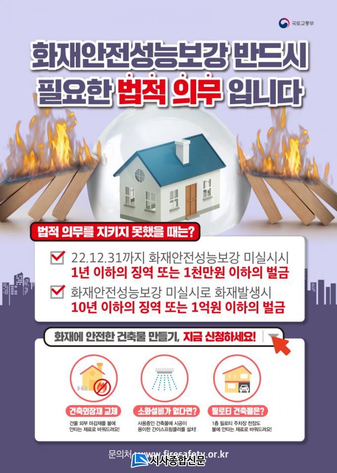 ÈÀç¾ÈÀü¼º´Éº¸°Àº ÈÀç¿¡ Ãë¾àÇÑ °¡¿¬¼º ¿ÜÀåÀ縦 ±³Ã¼Çϰųª °£À̽ºÇÁ¸µÅ¬·¯¸¦ ¼³Ä¡ÇÏ´Â µî °ÇÃ๰ ±¸Á¶º° Çʼö°ø¹ýÀ» Àû¿ëÇØ ½ÃÇàÇØ¾ß ÇÑ´Ù. ¶Ç ÇÊ¿ä½Ã Áö¿ø±Ý¾× ¹üÀ§¿¡¼ ¿Á¿ÜÇdz°è´Ü, ÇÏÇâ½Ä Çdz±¸ ¹× ¹æÈ¹® µîÀ» °ÇÃ๰ ¿©°Ç¿¡ ¸Â°Ô ¼±ÅÃÇØ ¼³Ä¡ÇÒ ¼ö ÀÖ´Ù.