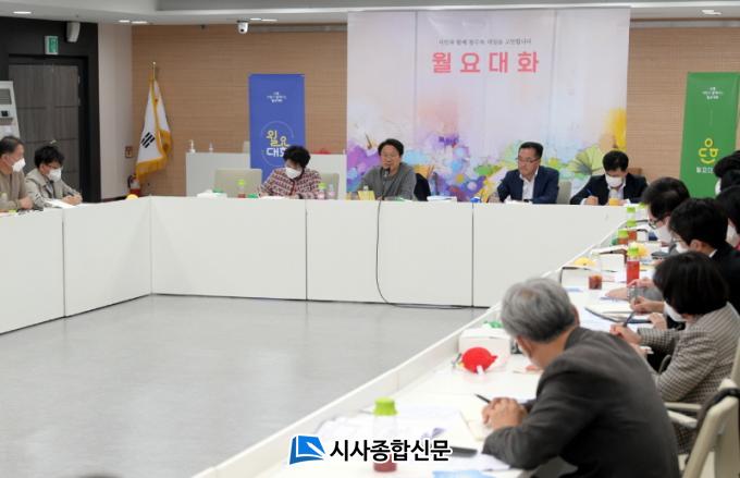 ¡®¿ù¿ä´ëÈ¡¯´Â ±³À°¡¤Ã»³â¡¤°æÁ¦¡¤Ã¢¾÷ µî °¢°è°¢ÃþÀÇ »ç¶÷µé°ú Áö¿ª Çö¾È¿¡ ´ëÇØ À̾߱âÇÏ´Â ÀÚ¸®·Î ¡®³»ÀÏÀÌ ºû³ª´Â ±âȸµµ½Ã ±¤ÁÖ¡¯ ½ÇÇöÀ» À§ÇÑ ½ÃÀå ÁÖÀç ´ëÈ Ã¢±¸´Ù. ¡®°ÝÀÇ ¾ø´Â ¸¸³²¡¯°ú ¡®ÁøÁ¤¼º ÀÖ´Â ¼ÒÅ롯À» ¸ñÇ¥·Î ÇÏ¸ç ¡ã°æÃ»Çϱ⠡㼳µæÇÏÁö ¾Ê±â ¡ã´ëÈ Áß ³¢¾îµéÁö ¾Ê±â 3°¡Áö ¿øÄ¢ ¾Æ·¡ ÁøÇàµÈ´Ù. 11¿ù7ÀÏÀº ȯ°æ ºÐ¾ß¸¦ ³íÀÇÇÒ ¿¹Á¤ÀÌ´Ù.