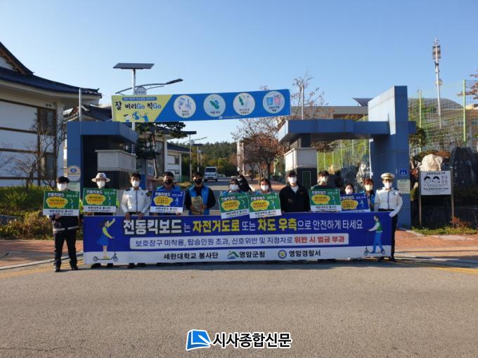 ÇöÀå¿¡¼´Â Àüµ¿Å±º¸µå ÁÖ À̿밴ÀÎ ´ëÇлý°ú °íµîÇлýµéÀ» ´ë»óÀ¸·Î Àüµ¿Å±º¸µåÀÇ ¿Ã¹Ù¸¥ ÀÌ¿ë ¹æ¹ý(¨ç ¿øµ¿±â ¿îÀü¸éÇã Çʼö, ¨è ¾ÈÀü¸ð Âø¿ë, ¨é 1ÀΠž½Â, ¨ê ÀÚÀü°Åµµ·Î³ª µµ·ÎÀÇ ¿ìÃø °¡ÀåÀÚ¸®·Î ÅëÇà, ¨ë űº¸µåÀÇ ¿Ã¹Ù¸¥ ÁÖÂ÷ ¹æ¹ý)¿¡ ´ëÇØ ¾È³»ÇÏ´Â µî ¾ÈÀüÇÑ Àüµ¿Å±º¸µå ÀÌ¿ëÀ» ´çºÎÇß´Ù.