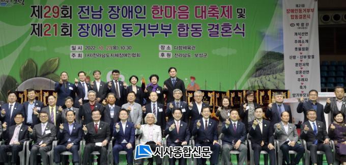 Àü¶ó³²µµ¿Í º¸¼º±ºÀÌ °øµ¿ ÈÄ¿øÇϰí Àü³²ÁöüÀå¾ÖÀÎÇùȸ°¡ ÁÖÃÖÇÑ À̳¯ Çà»ç´Â Àå¾ÖÀΰú Àå¾ÖÀÎ °¡Á·, ÀÚ¿øºÀ»çÀÚ µî 2õ¿© ¸íÀÌ Âü¼®ÇÑ °¡¿îµ¥ ¹Ú¼ø¼ö Àü³²ÁöüÀå¾ÖÀÎÇùȸ ¼øÃµ½Ã ºÎÁöȸÀå µî 17¸íÀÌ Àå¾ÖÀÎ º¹Áö¿¡ ±â¿©ÇÑ °ø·Î·Î Àü³²µµÁö»ç ǥâÀ» ¹Þ¾Ò´Ù.ÇüÆí»ó °áÈ¥½ÄÀ» ¿Ã¸®Áö ¸øÇÑ Àå¾ÖÀÎ µ¿°ÅºÎºÎ 33½ÖÀÌ ÈÃËÀ» ¹àÇû°í, ÃÊ´ë°¡¼ö °ø¿¬, ³ë·¡ÀÚ¶û µî ¾î¿ï¸² ÇѸ¶´ç Çà»ç°¡ À̾îÁ³´Ù.