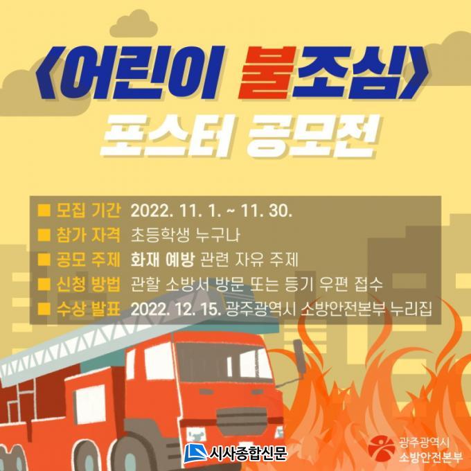 ƯÈ÷ ÃÖ¿ì¼öÀÛÀ¸·Î ¼±Á¤µÈ 1°³ ÀÛǰÀº ±¤ÁÖ±¤¿ª½Ã ´ëÇ¥·Î Âü°¡ÇØ ¼Ò¹æÃ» ÁÖ°ü º»¼± ½É»ç¸¦ ¹Þ°Ô µÈ´Ù. ¾î¸°ÀÌ ºÒÁ¶½É Æ÷½ºÅÍ °ø¸ðÀü°ú °ü·ÃµÈ ÀÚ¼¼ÇÑ ³»¿ëÀº ±¤ÁÖ¼Ò¹æ¾ÈÀüº»ºÎ ȨÆäÀÌÁö ¶Ç´Â °üÇÒ ¼Ò¹æ¼·Î ÀüÈ ¹®ÀÇÇϸé ÀÚ¼¼È÷ ¾È³»¹ÞÀ» ¼ö ÀÖ´Ù.