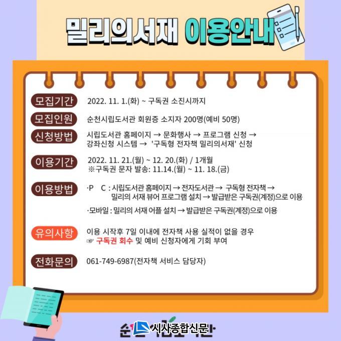 ¼øÃµ½Ã´Â À̹ø ½Ã¹ü ¿î¿µÀ» Åä´ë·Î ±¸µ¶Çü ÀüÀÚÃ¥À» ½Ã¹Îµé¿¡°Ô ¼Ò°³ÇÏ°í ³»³âºÎÅÍ ±¸µ¶Çü ÀüÀÚÃ¥ ¼ºñ½º¸¦ º»°Ý ¿î¿µÇÒ ¿¹Á¤ÀÌ´Ù.