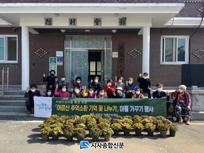 ´ã¾ç±º(±º¼ö À̺´³ë)Àº Ä¡¸Å¾È½É¸¶À»¿¡ °ÅÁÖÇÏ´Â 60¼¼ ÀÌ»ó Áֹο¡°Ô ±â¾ï ²É ȺÐÀ» ¹èºÎÇÏ°í ¸¶À» ȸ°ü ÁÖº¯ È´Ü¿¡ ½ÄÀçÇÏ¸ç ¸¶À»ÀÇ È¯°æÁ¶¼º¿¡ À̹ÙÁöÇß´Ù. Ä¡¸Å¾È½É¸¶À»Àº Ä¡¸Å¿¡ ´ëÇÑ ÀÌÇØ¿Í ÀνÄÀ» ¹ÙÅÁÀ¸·Î Ä¡¸ÅȯÀÚ¿Í °¡Á·ÀÌ ¾ÈÀüÇϰí ÀÚÀ¯·Ó°Ô Áö¿ª»çȸ¿¡¼ »ì¾Æ°¥ ¼ö ÀÖ°í, ÀÏ¹Ý Áֹε鵵 Ä¡¸Å¿¡ ´ëÇÑ µÎ·Á¿ò ¾øÀÌ »ì¾Æ°¥ ¼ö ÀÖµµ·Ï Ä¡¸Å¿¡ ´ëÇÑ ºÎÁ¤Àû ÀνÄÀ» °³¼±Çϱâ À§ÇÑ »ç¾÷ÀÌ´Ù.