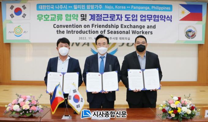 ³ªÁÖ½Ã(½ÃÀå À±º´ÅÂ)´Â Áö³ 4ÀÏ ½Ãû»ç ´ëȸÀǽǿ¡¼ Çʸ®ÇÉ ÆÊÆÎ°¡ÁÖ ¹× ÆÊÆÎ°¡ÁÖ ±¸¾Æ±¸¾Æ¡¤»ê·çÀ̽º½Ã(ã¼)¿Í ¡®¿ìÈ£±³·ù Çù·Â ¹× ¿Ü±¹ÀÎ °èÀý±Ù·ÎÀÚ ¾÷¹«Çù¾à¡¯À» ü°áÇß´Ù°í 6ÀÏ ¹àÇû´Ù.