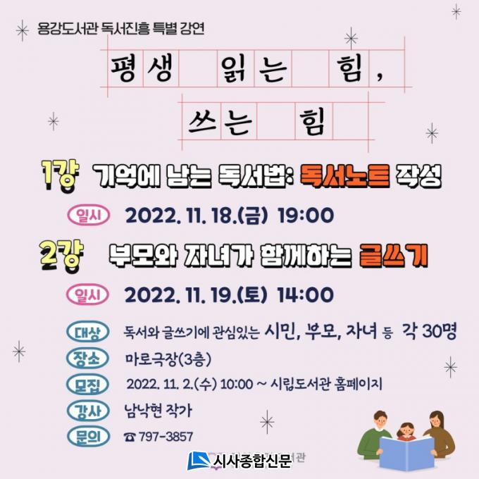 À̹ø °¿¬Àº µ¶¼¿Í ±Û¾²±â Àü¹®°¡·Î Ȱµ¿Çؿ ³²³«Çö ÀÛ°¡¸¦ ÃÊÃ»ÇØ ±â¾ï¿¡ ³²´Â µ¶¼¸¦ À§ÇÑ µ¶¼³ëÆ® ÀÛ¼º¹ý°ú, ºÎ¸ð¿Í Àڳడ ÇÔ²² ÀÏ»ó»ýȰ¿¡ Àû¿ëÇÒ ¼ö ÀÖ´Â ±Û¾²±â ¹æ¹ýÀ» Àü´ÞÇÒ ¿¹Á¤ÀÌ´Ù.