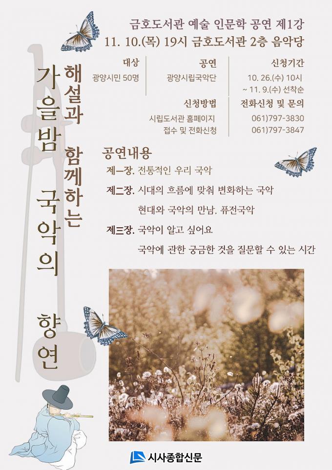 ¡®°¡À»¹ã ±¹¾ÇÀÇ Ç⿬¡¯Àº <±¤¾ç½Ã¸³±¹¾Ç´ÜÀÌ ÀüÇÏ´Â ¡°±¹¾ÇÀÌ ¾Ë°í ½Í¾î¿ä!¡±>¸¦ ÁÖÁ¦·Î °Á¾È ÁöÈÖÀÚÀÇ ÇØ¼³°ú ÇÔ²²ÇÏ´Â ±¹¾Ç´Ü °ø¿¬ÀÌ, ½Ã¹Î°ú °¡±î¿î °÷¿¡¼ ¼ÒÅëÇÒ ¼ö ÀÖ´Â °ø°£¿¡¼ ÁøÇàµÈ´Ù.