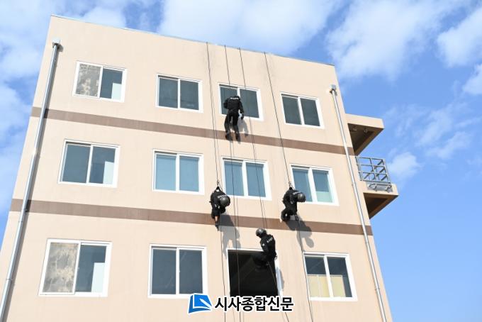 1Àüºñ Ư¼öÀÓ¹«¹Ý ¹× 11°ø¼ö¿©´Ü Ư¼öÀÓ¹«´ë¿ø 20¿©¸íÀÌ Âü°¡ÇÑ À̹ø ÈÆ·ÃÀº Å×·¯»óȲ ¹ß»ý ½Ã ÇöÀåÁ¾°á´É·ÂÀ» Çâ»óÇϱâ À§ÇÑ °ÍÀ¸·Î, ·¹Æç µîÀ» Ȱ¿ëÇÑ °Ç¹° ħÅõ¿Í Å×·¯¹üÀ» Áø¾ÐÇÏ´Â ³»ºÎ¼ÒÅÁ ÈÆ·ÃÀ» ÁßÁ¡À¸·Î 1Àüºñ ±âÁö¹æ¾î Àü¼úÈÆ·ÃÀå¿¡¼ ÁøÇàµÇ¾ú´Ù.
