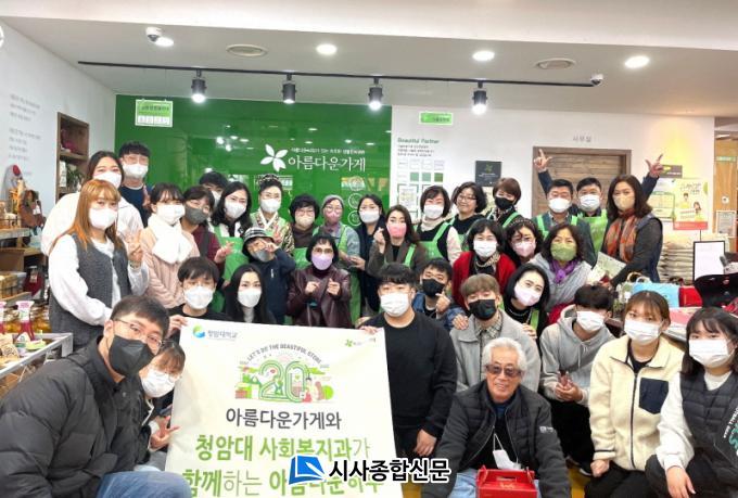 [½Ã»çÁ¾ÇսŹ® = Àå¹Î±Ô ±âÀÚ] û¾Ï´ëÇб³(ÃÑÀåÁ÷¹«´ëÇà ±è¼ºÈ«) »çȸº¹Áö°ú(ÇаúÀå ±èÇö³ª)´Â ºñ¿µ¸®°øÀÍÀç´Ü ¾Æ¸§´Ù¿î °¡°Ô ¼øÃµ¿¬ÇâÁ¡°ú ³ª´®À» ÅëÇØ 2021³â¿¡ ¾Æ¸§´Ù¿î ³ª´®Çб³·Î ÁöÁ¤µÇ¾úÀ¸¸ç, ¿ÃÇØµµ º¯ÇÔ¾øÀÌ µû¶æÇÑ ³ª´®À» ½ÇõÇß´Ù. »çȸº¹Áö°úÀÇ Çлýµé°ú ±³¼ö´ÔµéÀÌ ¿Á¤ÀûÀÎ µ¿ÂüÀ» ÅëÇØ À۳⺸´Ù ´õ ¸¹Àº ³ª´®°ªÀ» ¸ð±ÝÇÒ ¼ö ÀÖ¾ú´Ù.