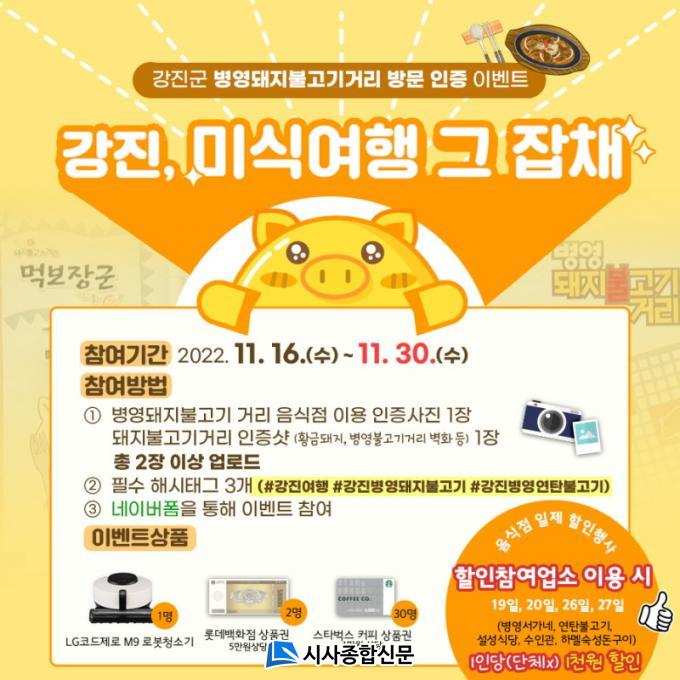 | °Áø±º º´¿µµÅÁöºÒ°í±â°Å¸®, ½Äµµ¶ô ¿©ÇàÁö·Î ÁÖ¸ñ ¿À´Â 30ÀϱîÁö Ȳ±ÝµÅÁö ÀÎÁõ¼¦ À̺¥Æ® µî Çà»ç °³ÃÖ |