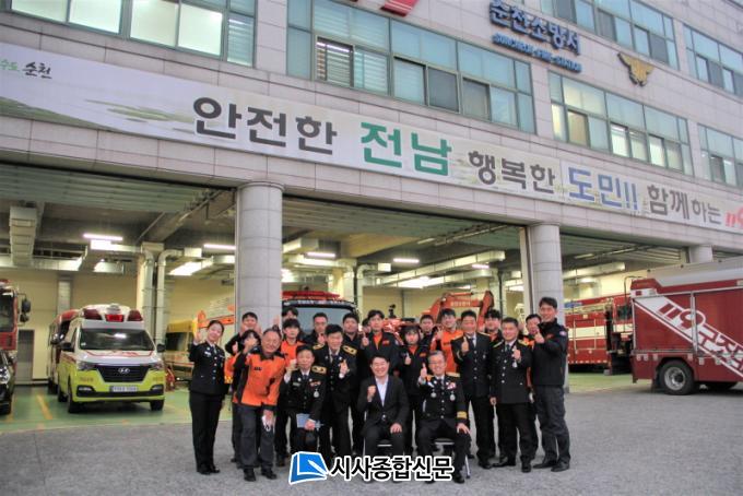 [½Ã»çÁ¾ÇսŹ® = Àå¹Î±Ô ±âÀÚ] ¼øÃµ¼Ò¹æ¼(¼Àå ¹Ú»óÁø)´Â 17ÀÏ ³ë°ü±Ô ¼øÃµ½ÃÀåÀÌ Àç³ÇöÀå ÃÖÀϼ±¿¡¼ ±Ù¹«ÇÏ´Â ¼Ò¹æ´ë¿øµéÀ» °Ý·ÁÇϰí ÇöÀåÀÇ ¸ñ¼Ò¸®¸¦ µè±â À§ÇØ ¼øÃµ¼Ò¹æ¼¿¡ ¹æ¹®Çß´Ù°í ¹àÇû´Ù.