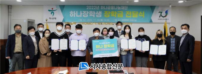 [½Ã»çÁ¾ÇսŹ® = ¿À½ÂÅà ±âÀÚ] Àü³²´ëÇб³´Â 11¿ù 14ÀÏ ¿©¼öÄ·ÆÛ½º ¼ÒȸÀǽǿ¡¼ ¹Úº¹Àç ºÎÃÑÀå µî º¸Á÷ÀÚµé°ú ¹Ú¸íÈñ ÇϳªÀºÇà ¿©¼öÁöÁ¡Àå, ÀÓ´ë½Ä ¿©ÃµÁöÁ¡Àå µîÀÌ Âü¼®ÇÑ °¡¿îµ¥ Çϳª±ÝÀ¶³ª´®Àç´ÜÀÇ ¡®ÇϳªÀåÇбݡ¯ Àü´Þ½ÄÀ» °¡Á³´Ù.