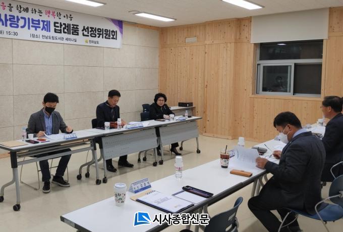 Àü³²µµ´Â ¡®Àü¶ó³²µµ °íÇâ»ç¶û±âºÎ±Ý ¸ð±Ý ¹× ¿î¿ë¿¡ °üÇÑ Á¶·Ê¡¯ Á¦Á¤․°øÆ÷ Áï½Ã ´ä·Êǰ ¼±Á¤À§¿øÈ¸¸¦ ±¸¼ºÇØ ´ä·Êǰ ¼±Á¤À» ÃßÁøÇß´Ù. ´ä·Êǰ¸ñ ½É»ç´Â Áö¿ª ´ëÇ¥¼º, ½Ã±º °£ ÇüÆò¼º, ´ä·ÊǰÀÇ ¸Å·Âµµ µîÀ» Áß½ÉÀ¸·Î ÀÌ·ïÁ³´Ù.