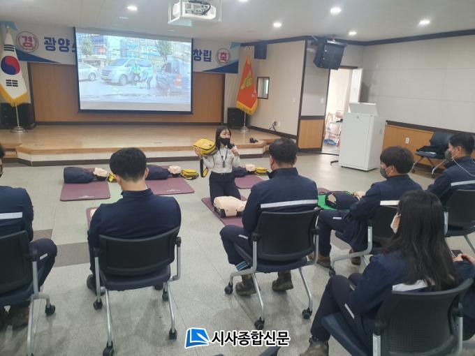 À̹ø ±³À°Àº ±¤ÁÖÀü³²º»ºÎ ¼øÃµ½Ã¼³»ç¾÷¼Ò Á÷¿ø ´ë»óÀ¸·Î ÇÏ¿© Àü¶ó³²µµ ±¤¾ç¼Ò¹æ¼ ¿¹¹æ¾ÈÀü°ú µµ¿òÀ» ¹Þ¾Æ ½ÃÇàÇÏ¿´À¸¸ç, ½Ãû°¢ ±³À° ¹× ½ÉÆó¼Ò»ý¼ú(CPR) ¹× AED »ç¿ë¹ý µî ÀÀ±Þ óġ ÀýÂ÷¸¦ ÀÍÈ÷¸ç Á÷Á¢ ¸öÀ¸·Î üÇèÇÏ´Â ½Ç½À À§ÁÖ·Î ÁøÇàÇÏ¿´´Ù.