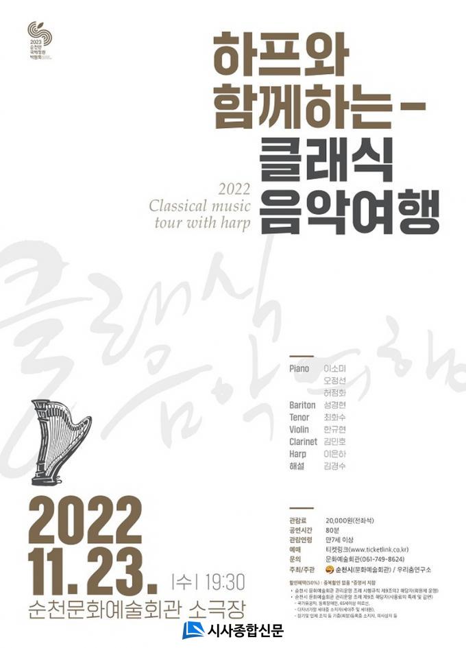 | ¼øÃµ¹®È¿¹¼úȸ°ü, ÇÏÇÁ ¼±À²°ú ÇÔ²² ¶°³ª´Â Ŭ·¡½Ä À½¾Ç ¿©Çà °ø¿¬ °³ÃÖ ¿À´Â 23ÀÏ ¹®È¿¹¼úȸ°ü ¼Ò±ØÀå¿¡¼ ÆÛÁö´Â ¾Æ¸§´Ù¿î ÇÏÇÁÀÇ ¼±À²