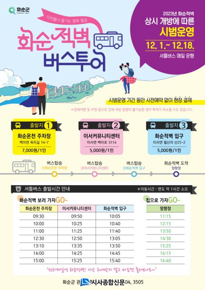 Åõ¾î¹ö½º ž½Â Àå¼Ò´Â ȼø¿Âõ ÁÖÂ÷Àå, À̼Ŀ¹Â´ÏƼ¼¾ÅÍ, ȼøÀûº® ÀÔ±¸ 3°÷ÀÌ´Ù. ¿ÀÀü 9½Ã 30ºÐºÎÅÍ ¿ÀÈÄ 3½Ã 40ºÐ±îÁö 30ºÐ¿¡¼ 1½Ã°£ °£°ÝÀ¸·Î ¿îÇàÇÒ ¿¹Á¤ÀÌ´Ù. ž½Â ÀοøÀº ¹ö½º 1´ë´ç 30¸íÀ̸ç, ÀÌ¿ë ¿ä±ÝÀº ž½Â Àå¼Ò¿¡ µû¶ó ´Þ¶óÁø´Ù. ȼø¿Âõ ÁÖÂ÷ÀåÀº 7000¿ø, À̼Ŀ¹Â´ÏƼ¼¾ÅÍ¿Í È¼øÀûº® ÀÔ±¸´Â 5000¿øÀÌ´Ù.