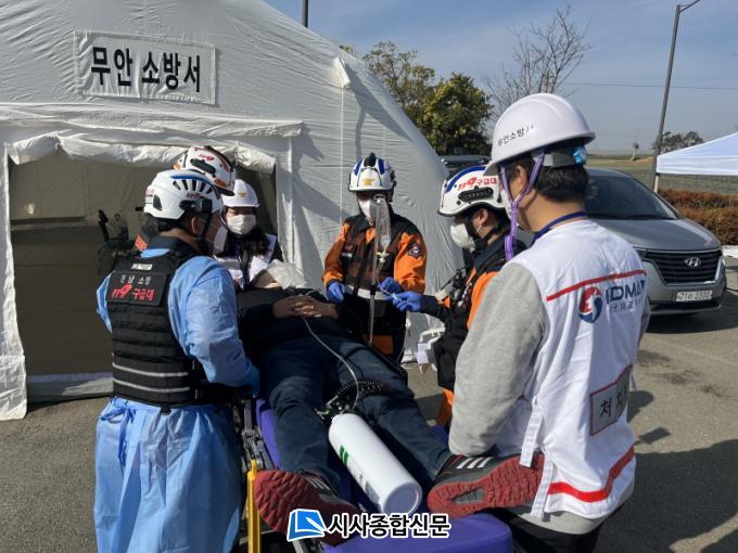 ÈÆ·ÃÀº ´ÙÁßÃßµ¹ ±³Åë»ç°í ¹ß»ý¿¡ µû¸¥ ´Ù¼ö»ç»óÀÚ ¹ß»ý »óȲÀ» °¡Á¤ÇØ ÁøÇàµÆ´Ù. ¹«¾È¼Ò¹æ¼, ¹«¾Èº¸°Ç¼Ò, Àü³²ÀÀ±ÞÀÇ·áÁö¿ø¼¾ÅÍ, ¸ñÆ÷Çѱ¹º´¿ø Àç³ÀÇ·áÁö¿øÆÀ(DMAT) µî 8°³ À¯°ü±â°ü 152¸í°ú Àåºñ 37´ë°¡ µ¿¿øµÆ´Ù.
