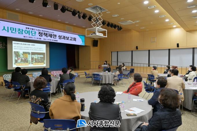 ÇÑÆí, ¼±¸¿¡ °ÅÁÖÇÏ´Â ÁֹΠ47¸íÀ¸·Î ±¸¼ºµÈ ½Ã¹ÎÂü¿©´ÜÀº ¸Å¿ù Á¤±âÀû Ȱµ¿À» ÅëÇØ ¿©¼ºÀÇ ½Ã°¢À» ¹Ý¿µÇÑ Á¤Ã¥ Á¦¾È, ¿©¼ºÄ£È °ø°£ ¹× Á¤Ã¥ ¸ð´ÏÅ͸µ, ¿©¼º¾È½Éº¸¾È°ü µîÀÇ È°µ¿À» ¼öÇàÇϰí ÀÖ´Ù.