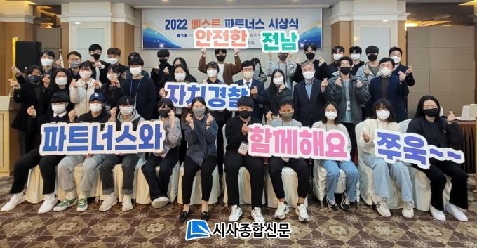 Àü³²µµÀÚÄ¡°æÂûÀ§¿øÈ¸´Â 28ÀÏ ¸ñÆ÷ ÆùŸ³ª ºñÄ¡ °ü±¤È£ÅÚ¿¡¼ ¡®2022 Àü³² ÀÚÄ¡°æÂû ÆÄÆ®³Ê½º ½Ã»ó½Ä¡¯À» °³ÃÖÇß´Ù. ½Ã»ó½Ä¿¡¼´Â º£½ºÆ® ÆÄÆ®³Ê½º 6¸íÀ» ¼±Á¤ÇØ »óÀå°ú »ó±ÝÀ» ¼ö¿©Çϰí, ¼º½ÇÇÏ°Ô È°µ¿À» ¸¶Ä£ ÆÄÆ®³Ê½º¿¡°Ô ¼ö·áÁõÀ» Àü´ÞÇß´Ù.