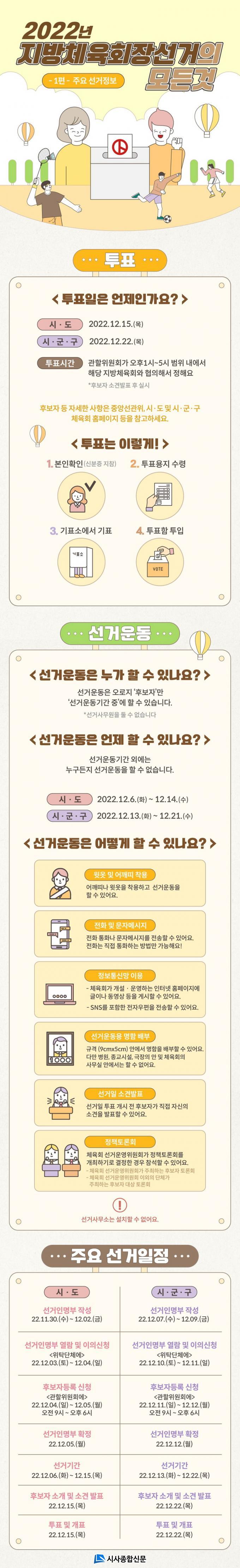 ÅõÇ¥´Â ¼±°ÅÀÏ Èĺ¸ÀÚ ¼Ò°ß¹ßÇ¥ ÈÄ °°Àº Àå¼Ò¿¡¼ ÇöÀåÅõÇ¥·Î ½Ç½ÃÇÑ´Ù. ÅõÇ¥½Ã°£Àº µµÃ¼À°È¸Àå¼±°Å´Â ¿ÀÈÄ 2½Ã30ºÐºÎÅÍ 4½Ã30ºÐ±îÁöÀ̸ç, ½Ã․±ºÃ¼À°È¸Àå¼±°Å´Â ¿ÀÈÄ 1½Ã ~ 5½Ã ¹üÀ§ ³»¿¡¼ °¢ ½Ã․±º¼±°üÀ§¿Í Áö¹æÃ¼À°È¸°¡ ÇùÀÇÇÏ¿© Á¤ÇÑ´Ù.