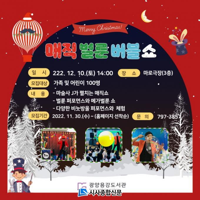 [½Ã»çÁ¾ÇսŹ® = Àå¹Î±Ô ±âÀÚ] ±¤¾ç¿ë°µµ¼°üÀº 2022 Å©¸®½º¸¶½º¸¦ ±â³äÇØ ¾î¸°ÀÌ¿Í °¡Á·ÀÌ Æ¯º°ÇÑ Ãß¾ïÀ» ³²±æ ¼ö ÀÖµµ·Ï, ¿À´Â 12¿ù 10ÀÏ ¿ÀÈÄ 2½Ã¿¡ ¡®¸ÅÁ÷ ¹ú·é ¹öºí¼î¡¯ °ø¿¬À» ÁغñÇß´Ù.