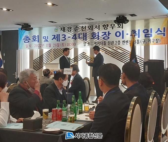 Àç°æ¼øÃµ¿Ü¼Çâ¿ìȸ Á¦3´ë¡¤Á¦4´ë ȸÀå ÀÌ¡¤ÃëÀӽİú ¼Û³âÀÇ ¹ãÀ¸·Î ³ª´² ÁøÇàµÈ À̳¯ Çà»ç¿¡´Â ±×µ¿¾È Àç°æ¼øÃµ¿Ü¼Çâ¿ìȸ ¹ßÀüÀ» À̲ø¾î ¿Â ±è¼®Áø ȸÀåÀÇ µÚ¸¦ À̾î ÀÌÁ¾Áø ȸÀåÀÌ ½ÅÀÓȸÀåÀ¸·Î ÃëÀÓÇß´Ù.