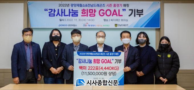 ±èÀç°æ ±¤¾ç½Ã»ç¶û³ª´®º¹ÁöÀç´Ü ÀÌ»çÀåÀº ¡°°¨»ç³ª´® Èñ¸Á °ñ ½Ò ±âºÎ Çà»ç´Â »çȸº¹Áö½Ã¼³ ¹× Ãë¾à°èÃþÀ» µ½´Â ÁÁÀº ÃëÁöÀÇ »ç¾÷ÀÌ´Ù¡±¸ç, ¡°Ç×»ó ´Ù¾çÇÑ ³ª´®È°µ¿À¸·Î Áö¿ª»ç¶ûÀ» ½ÇõÇϰí ÀÖ´Â Æ÷½ºÄÚ ±¤¾çÁ¦Ã¶¼Ò¿¡ °¨»çÇÏ´Ù¡±°í ÀüÇß´Ù.