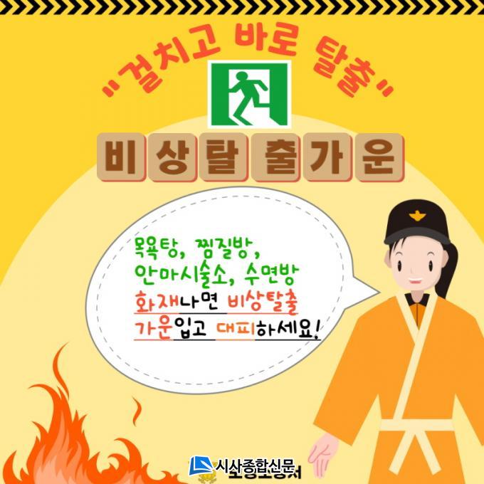 ¡®ºñ»ó Å»Ãâ¿ë °¡¿î¡¯Àº »ç¿ì³ª, ¸ñ¿åÅÁ, ÂòÁú¹æ µî¿¡ ÈÀç°¡ ¹ß»ýÇßÀ» ¶§ ¿ÊÀ» ì±â´Ù ´ëÇÇ ½Ã°£ÀÌ ´Ê¾îÁ® ¿¬±â¿¡ Áú½ÄÇÏ´Â µî ÀθíÇÇÇØ°¡ ¹ß»ýÇÏ´Â °æ¿ì¸¦ ¹æÁöÇϱâ À§ÇØ ºñÄ¡ÇÏ´Â °¡¿îÀÌ´Ù.