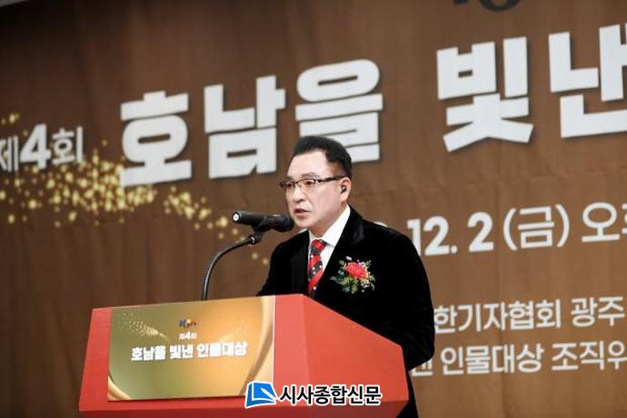 | ¡ã(»ç)´ëÇѱâÀÚÇùȸ ±¤ÁÖÀü³²Çùȸ°¡ ÁÖÃÖÇÑ 2022³â ¡®Á¦4ȸ È£³²À» ºû³½ Àι°´ë»ó¡¯ ½Ã»ó½Ä¿¡¼ Á¤½ÂÇö ÇùȸÀåÀÌ ´ëȸ»ç¸¦ Çϰí ÀÖ´Ù. |