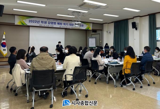 À̹ø ¸ðÀÇÈÆ·ÃÀº Çб³ ³» °¨¿°º´ À§±â »óȲ ¹ß»ý ½Ã Çб³ÀÇ ´ëÀÀ ¿ª·® °È¿Í ±¸¼º¿øº° ÀÓ¹« ¼÷Áö¸¦ À§ÇØ °ü¸®ÀÚ, º¸°Ç(´ã´ç)±³»ç, ´ãÀÓ±³»ç, ÇàÁ¤½ÇÀå µî ¾÷¹« °ü°èÀÚ°¡ °í·ç Âü¿©ÇÏ¿© ±³³» ȯÀÚ ¹ß»ý ½Ã³ª¸®¿À¸¦ ¹ÙÅÁÀ¸·Î ÅäÀÇ½Ä ÈÆ·ÃÀ» ÁøÇàÇß´Ù.