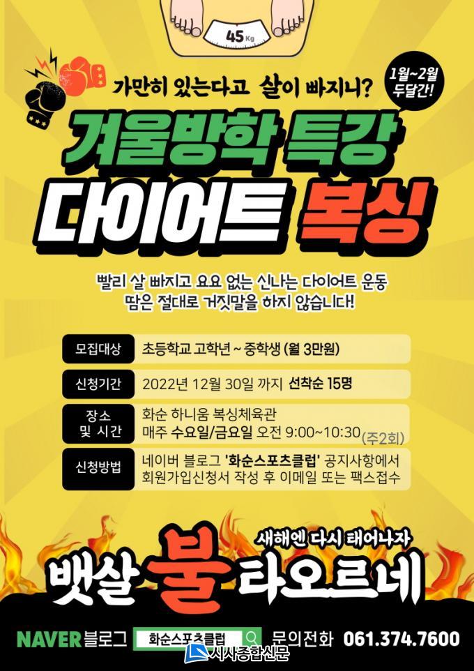 | ȼø½ºÆ÷Ã÷Ŭ·´, °Ü¿ï¹æÇÐ ´ÙÀÌ¾îÆ® º¹½Ì¹Ý ȸ¿ø ¸ðÁý ³»³â 1~2¿ù ¸ÅÁÖ 2ȸ ¿î¿µ...12¿ù 30ÀϱîÁö ¼±Âø¼ø 15¸í ¸ðÁý