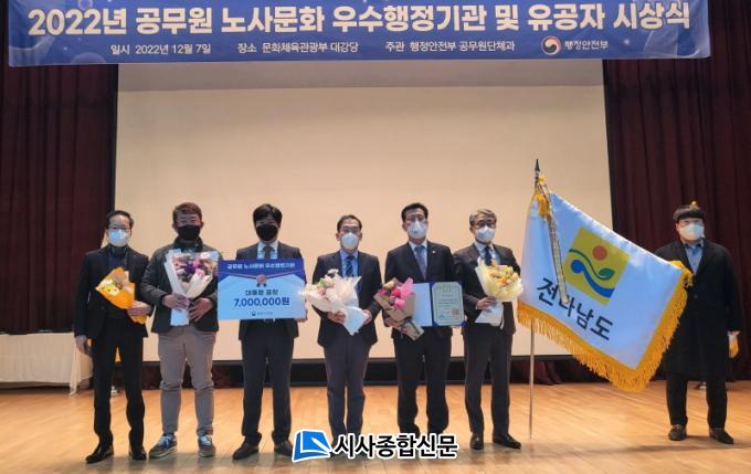 À̳¯ Á¤ºÎ¼¼Á¾Ã»»ç ¹®ÈüÀ°°ü±¤ºÎ ´ë°´ç¿¡¼ ¿¸° ¡®2022³â °ø¹«¿ø ³ë»ç¹®È ¿ì¼ö±â°ü ¹× °ÇÀü³ë»ç°ü°è±¸Ãà À¯°øÀÚ ½Ã»ó½Ä¡¯¿¡¼± ÇÑâ¼· ÇàÁ¤¾ÈÀüºÎ Â÷°ü, ÀÎÁõ±â°ü Æ÷»ó ¼ö»óÀÚ µî °ü°èÀÚ 100¿© ¸íÀÌ Âü¼®ÇØ ¿ì¼ö»ç·Ê¸¦ °øÀ¯ÇÏ°í °Ý·ÁÇß´Ù.