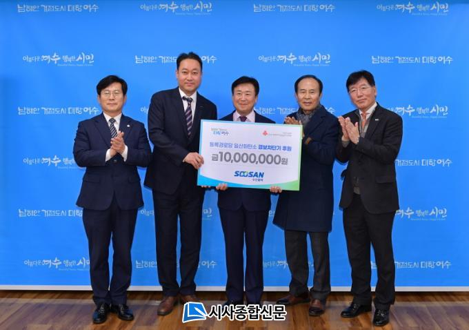7ÀÏ ¿©¼ö½ÃÀå½Ç¿¡¼ ¿¸° Àü´Þ½Ä¿¡´Â Á¤±â¸í ½ÃÀå°ú ÇÏ¿µÁ¦ ¢ß¼ö»êÈ¨ÅØ ºÎ»çÀå, ¼ºÁØ±Ô Àü¹«ÀÌ»ç, °ÇöÅ ¿©¼ö½ÃÀÇȸ ¿î¿µÀ§¿øÀåÀÌ Âü¼®Çß´Ù.
